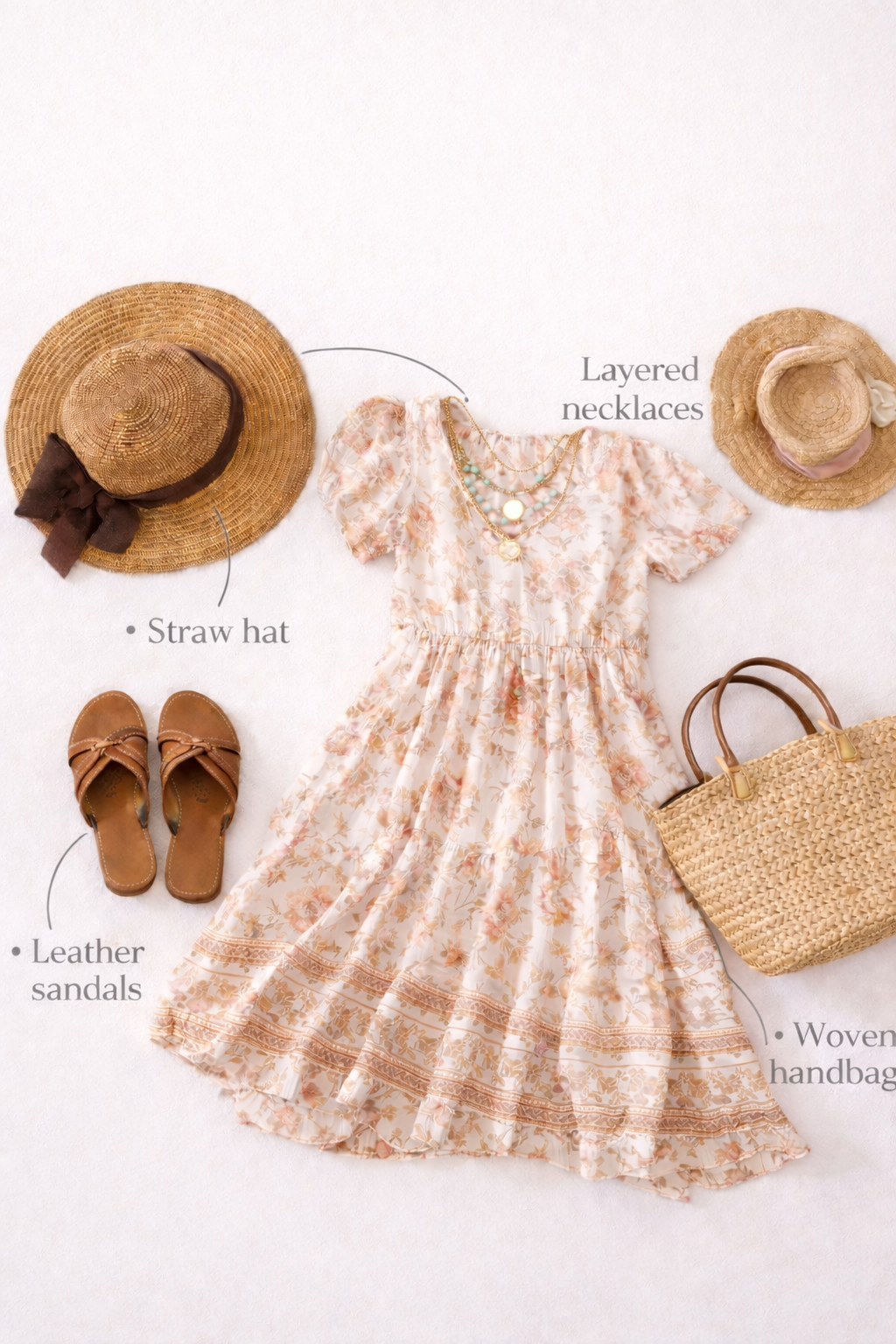 Turn this dress into the perfect summer outfit with just a few bohemian essentials. Pair it with leather sandals, a straw hat, layered necklaces, and a woven handbag to create an effortless look that feels relaxed, feminine, and ready for beach days, vacations, or weekend outings.