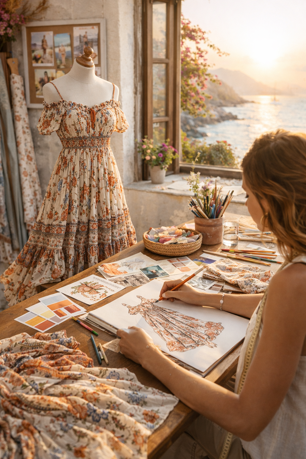Soft fabrics, flowing silhouettes, and timeless prints.